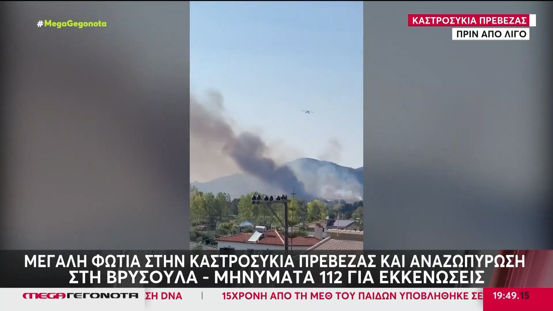 Μεγάλη πυρκαγιά στην Καστροσυκιά Πρέβεζας και αναζωπύρωση στη Βρυσούλα με κινητοποίηση της Πυροσβεστικής και προληπτικές εκκενώσεις
