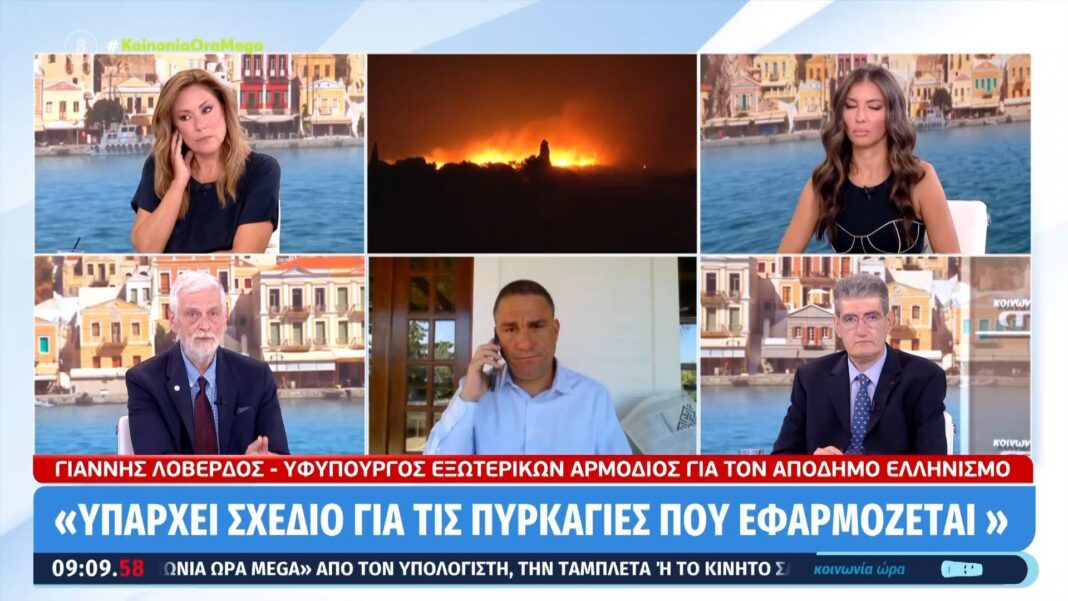 Ο υφυπουργός Εξωτερικών τοποθετήθηκε σχετικά με την αντιμετώπιση των πυρκαγιών και την κρατική ετοιμότητα. Επεσήμανε ότι υπάρχει ήδη ένα οργανωμένο σχέδιο δράσης και βασικά πυροσβεστικά μέσα για την προστασία των πολιτών.