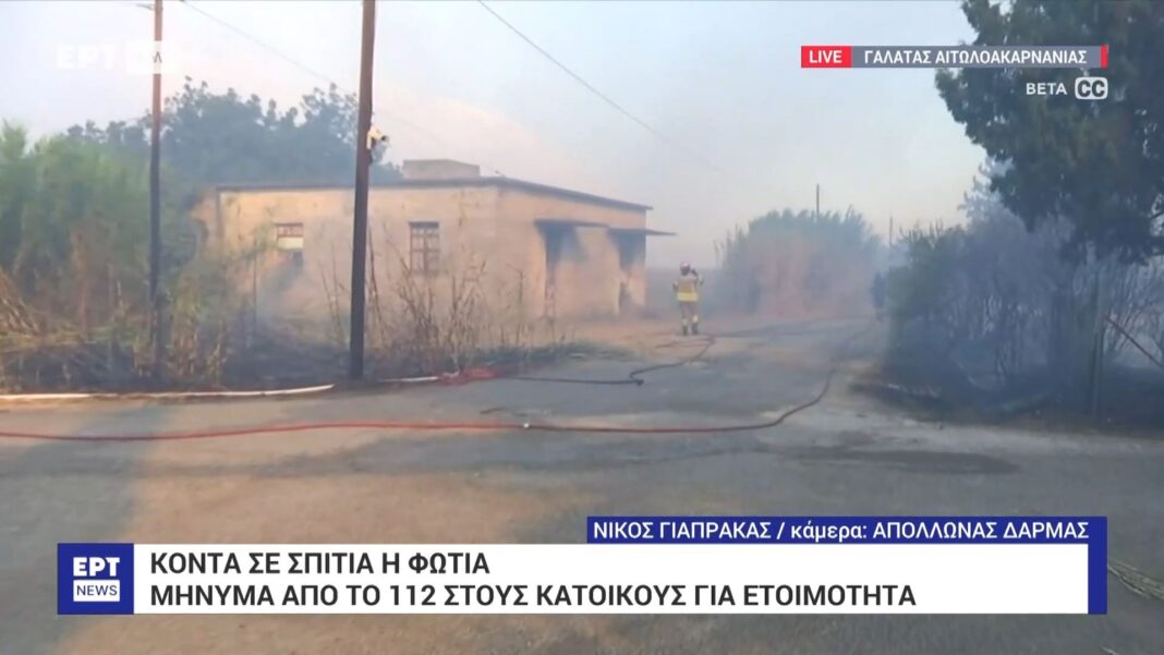 Επείγουσα προειδοποίηση 112 στον Γαλατά Αιτωλοακαρνανίας λόγω πυρκαγιάς που απειλεί κατοικημένες περιοχές και απαιτεί άμεση ετοιμότητα των κατοίκων