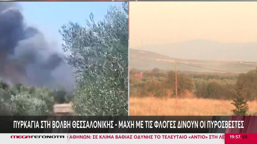 Πυρκαγιά κοντά στη Βόλβη Θεσσαλονίκης με άμεση επέμβαση της Πυροσβεστικής και εκκένωση οικισμού για την προστασία των κατοίκων