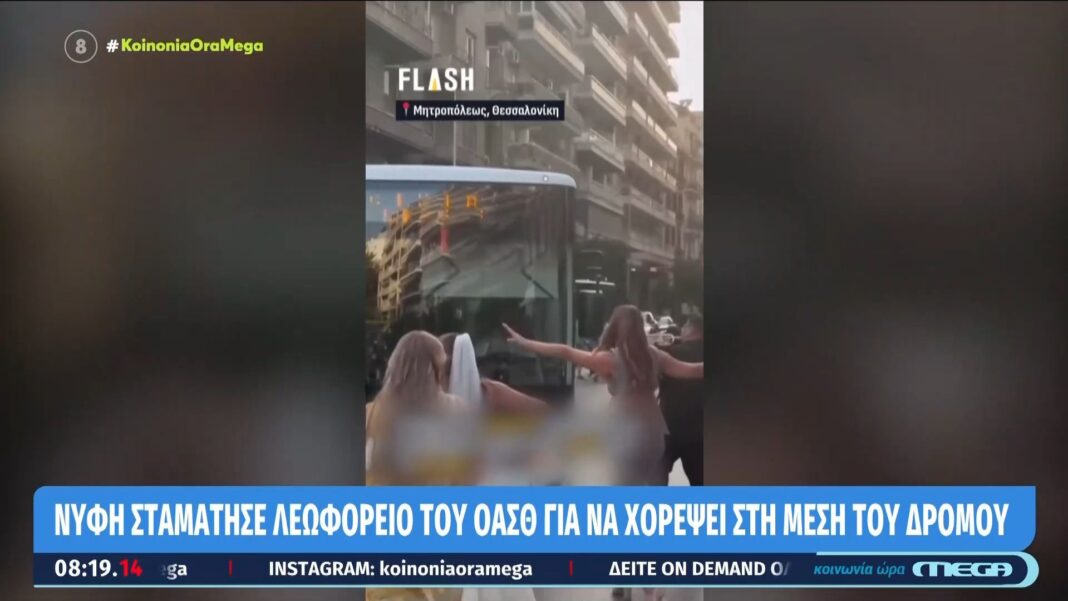 Θεσσαλονίκη: Νύφη σταμάτησε λεωφορείο του ΟΑΣΘ για να χορέψει στη μέση του δρόμου