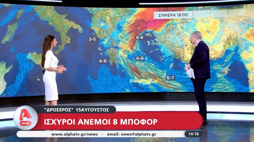 Δροσερός Δεκαπενταύγουστος με ισχυρούς ανέμους έως 8 μποφόρ, χαμηλότερες θερμοκρασίες και προειδοποιήσεις για προσοχή στις θαλάσσιες και παράκτιες περιοχές