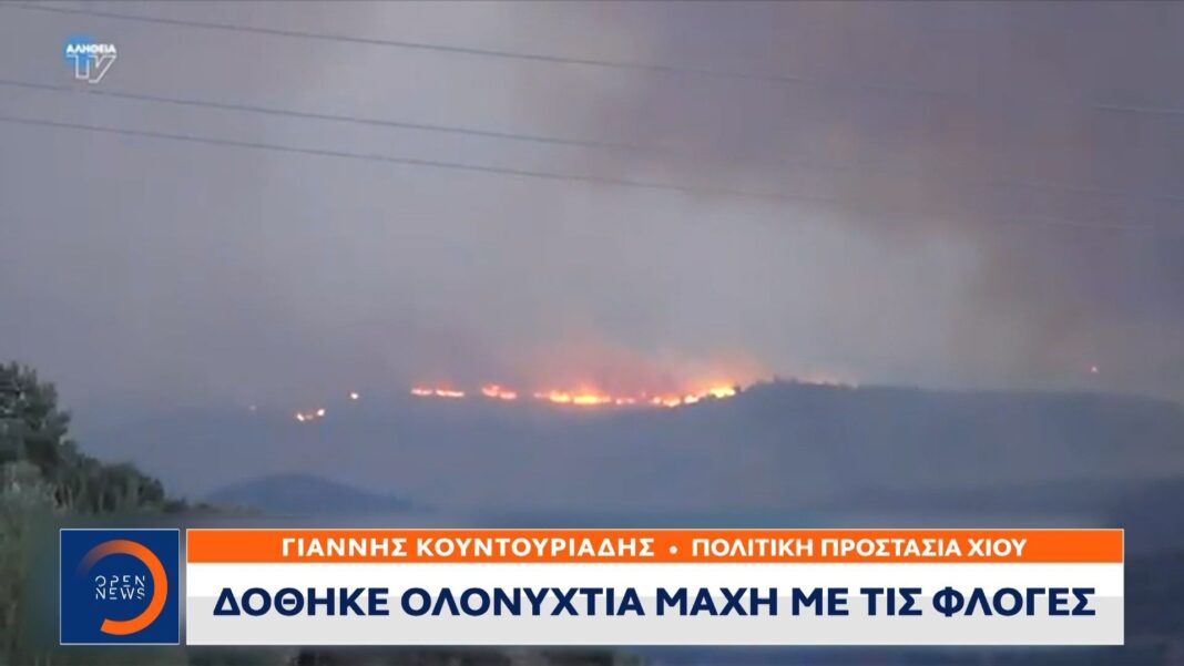 Στη Χίο, οι πυροσβέστες και οι εθελοντές αντιμετώπισαν με γενναιότητα τη φωτιά που ξέσπασε στην περιοχή των Καμπιών. Η ολονύχτια μάχη τους είχε ως στόχο να περιορίσει την εξάπλωση της πυρκαγιάς προς τα Λεπτόποδα, με αποτέλεσμα να καταφέρουν να συγκρατήσουν το μέτωπο.