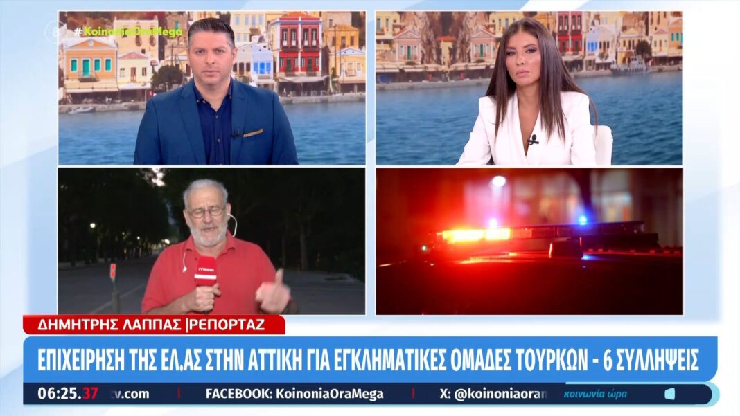 Σε συντονισμένη επιχείρηση της Ελληνικής Αστυνομίας στην Αττική, συνελήφθησαν έξι άτομα που φέρονται να ανήκουν σε εγκληματική ομάδα Τούρκων. Οι συλλήψεις πραγματοποιήθηκαν στο πλαίσιο ερευνών που στοχεύουν στην καταπολέμηση της οργανωμένης εγκληματικότητας στην περιοχή.
