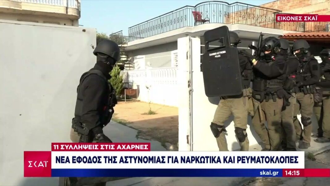 Η Αστυνομία πραγματοποίησε συντονισμένη επιχείρηση στις Αχαρνές, στοχεύοντας σε υποθέσεις ναρκωτικών και ρευματοκλοπών. Στο πλαίσιο της επιχείρησης, συνελήφθησαν 11 άτομα, ενώ κατασχέθηκαν σημαντικές ποσότητες ναρκωτικών ουσιών και ηλεκτρικών συσκευών που είχαν κλαπεί.