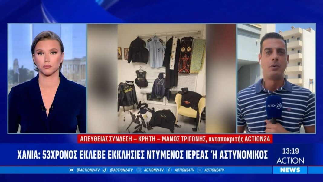 Ένας 53χρονος άνδρας συνελήφθη στα Χανιά, κατηγορούμενος για σειρά κλοπών σε εκκλησίες, τις οποίες διέπραξε ντυμένος είτε ιερέας είτε αστυνομικός. Ο δράστης φέρεται να εκμεταλλεύτηκε την υποκρισία της εμφάνισής του για να αποκτήσει πρόσβαση στους ναούς και να αφαιρέσει πολύτιμα αντικείμενα.