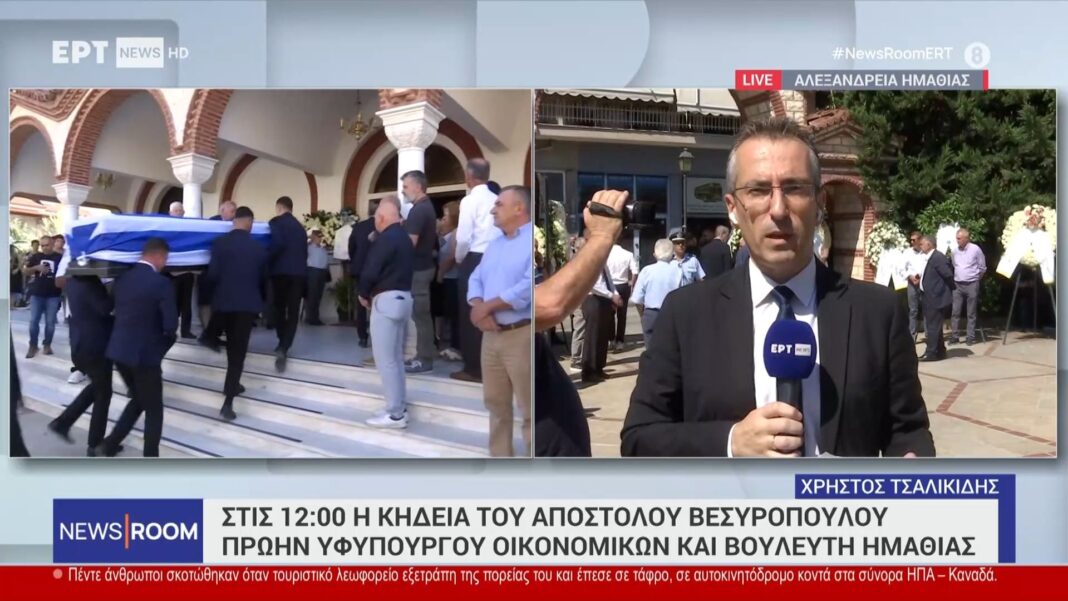 Η κηδεία του Α. Βεσυρόπουλου, πρώην Υφυπουργού Οικονομικών και βουλευτή Ημαθίας, θα πραγματοποιηθεί σήμερα στις 12:00. Ο πολιτικός, που υπηρέτησε με αφοσίωση τη χώρα του, άφησε πίσω του μία σημαντική κληρονομιά στον τομέα των οικονομικών και της πολιτικής.