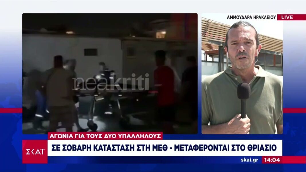 Φωτιά εκδηλώθηκε σε γήπεδο στην Αμμουδάρα του Ηρακλείου, προκαλώντας αναστάτωση στην τοπική κοινότητα. Δύο υπάλληλοι που βρίσκονταν στο σημείο κατά την εκδήλωση της πυρκαγιάς έχουν μεταφερθεί σε σοβαρή κατάσταση στη Μονάδα Εντατικής Θεραπείας, με τις αρχές να διερευνούν τα αίτια της φωτιάς.