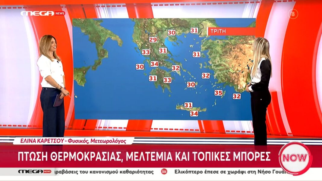 Η πρόγνωση του καιρού για την Τρίτη 26 Αυγούστου δείχνει πτώση της θερμοκρασίας σε πολλές περιοχές της χώρας. Αναμένονται μελτέμια, που θα επηρεάσουν κυρίως τα παράλια, ενώ οι άνεμοι θα φτάσουν τα 6 μποφόρ.