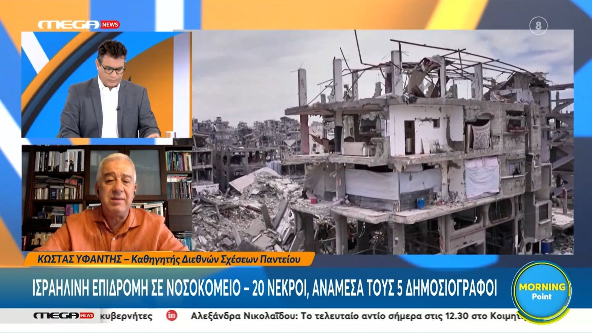 Ο Κώστας Υφαντής, Καθηγητής Διεθνών Σχέσεων στο Πάντειο Πανεπιστήμιο, αναλύει την κατάσταση στη Γάζα, εστιάζοντας στις πρόσφατες εξελίξεις μετά την επίθεση σε νοσοκομείο της πόλης. Υποστηρίζει ότι η διεθνής κοινότητα δεν δείχνει ενδιαφέρον για την άμεση λήξη του πολέμου, καθώς ορισμένες χώρες φαίνεται να έχουν συμφέροντα που τις ευνοούν.