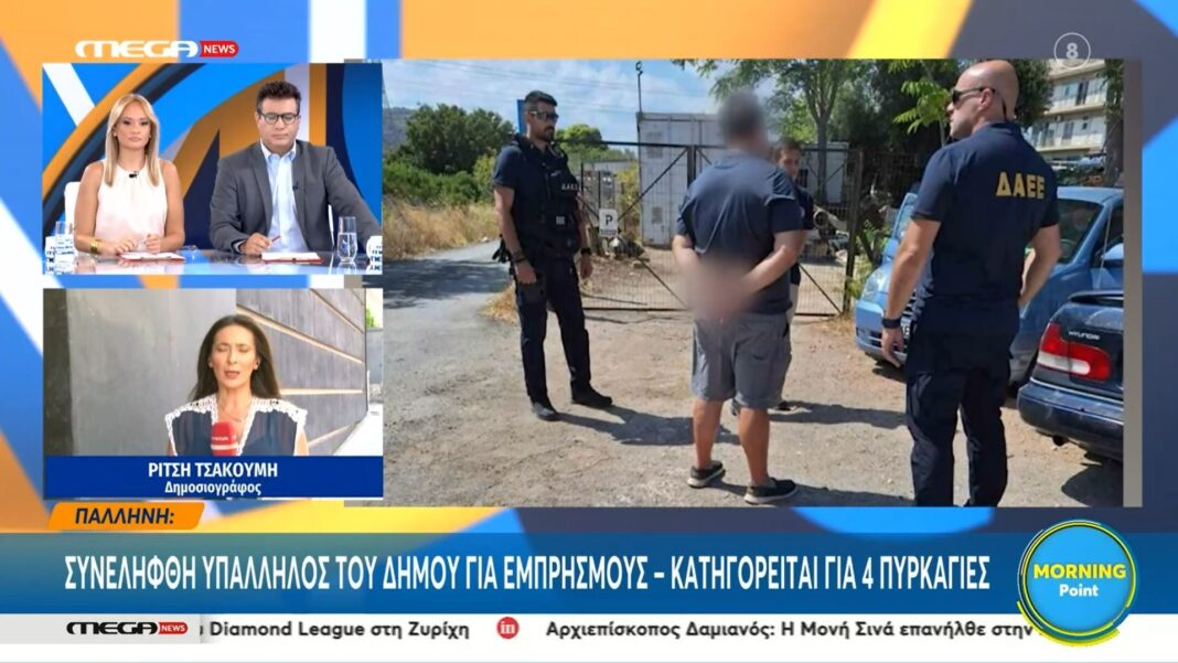 Συνελήφθη υπάλληλος του δήμου Παλλήνης, καθώς φέρεται να εμπλέκεται σε τέσσερις πυρκαγιές που προκλήθηκαν στην περιοχή. Οι αρχές διερευνούν τις συνθήκες κάτω από τις οποίες έγιναν οι εμπρησμοί και τις πιθανές αιτίες που οδήγησαν στη σύλληψη του υπαλλήλου.
