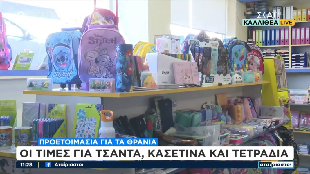 Οι μαθητές προετοιμάζονται για την επιστροφή τους στα θρανία, προμηθευόμενοι τα απαραίτητα σχολικά είδη. Οι τιμές κυμαίνονται σε διάφορες κατηγορίες, με τις τσάντες, τις κασετίνες και τα τετράδια να είναι τα πιο δημοφιλή προϊόντα.