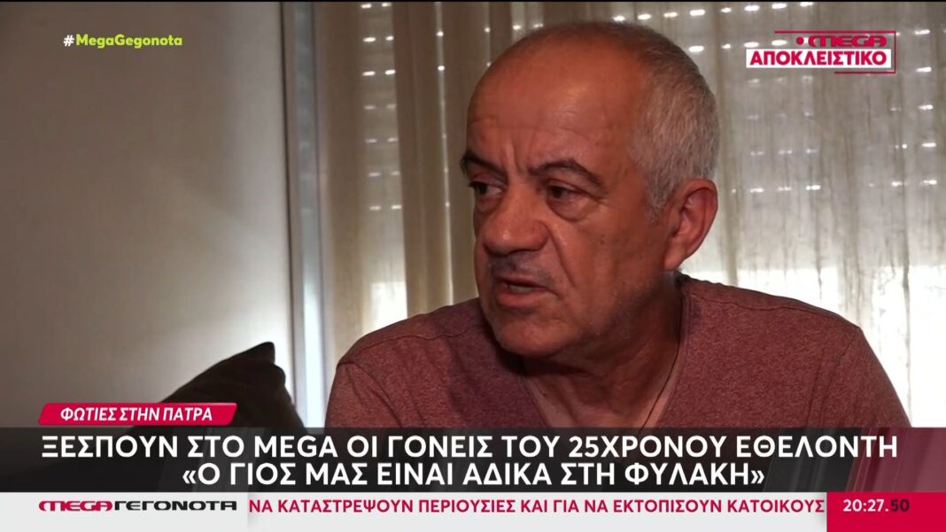 Πάτρα: Ξεσπούν στο MEGA οι γονείς του 25χρονου εθελοντή που κατηγορείται για εμπρησμό