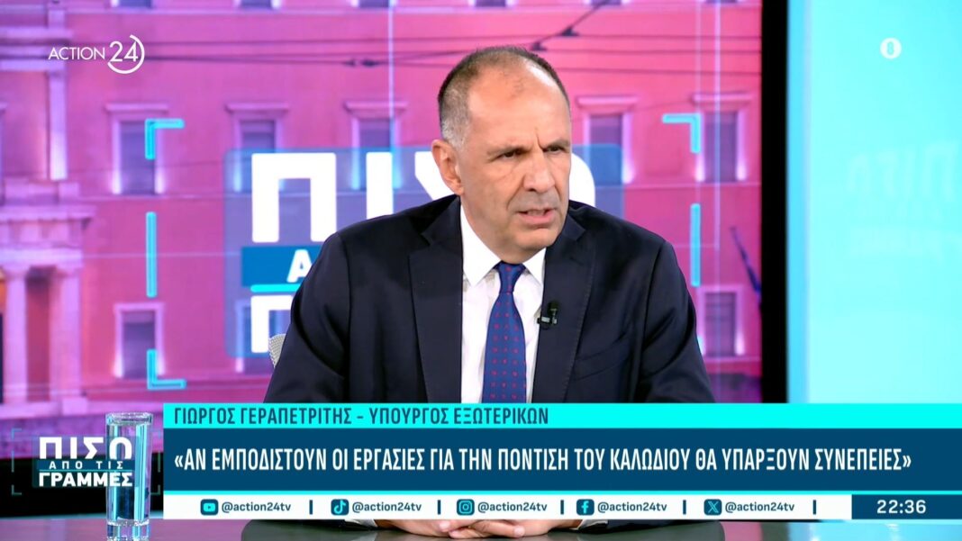 Ο υπουργός Εξωτερικών Γ. Γεραπετρίτης προειδοποίησε ότι τυχόν καθυστερήσεις ή εμπόδια στις εργασίες πόντισης του καλωδίου θα έχουν σοβαρές συνέπειες. Η δήλωσή του τονίζει τη σημασία του έργου για την ενεργειακή ασφάλεια της χώρας και την περιφερειακή συνεργασία.