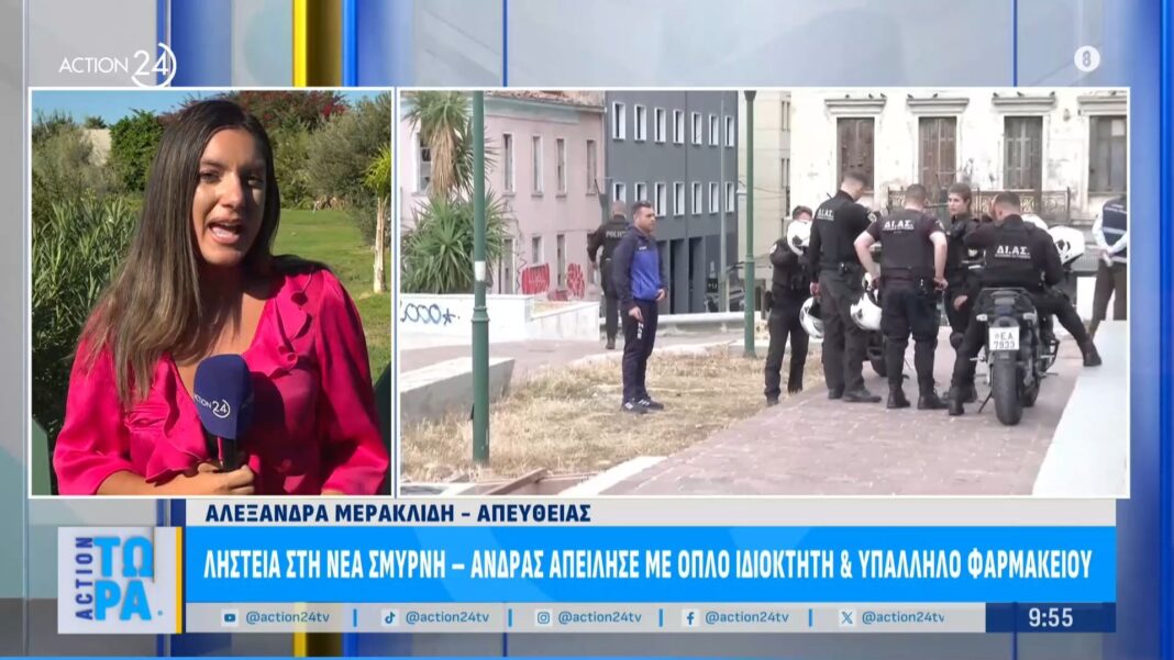 Σοβαρό περιστατικό σημειώθηκε σε φαρμακείο στην Νέα Σμύρνη, όταν άγνωστος άνδρας, οπλισμένος, απείλησε τον ιδιοκτήτη και την υπάλληλο. Ο δράστης, ζητώντας χρήματα, κατάφερε να αποσπάσει άγνωστο χρηματικό ποσό και στη συνέχεια διέφυγε από το σημείο.
