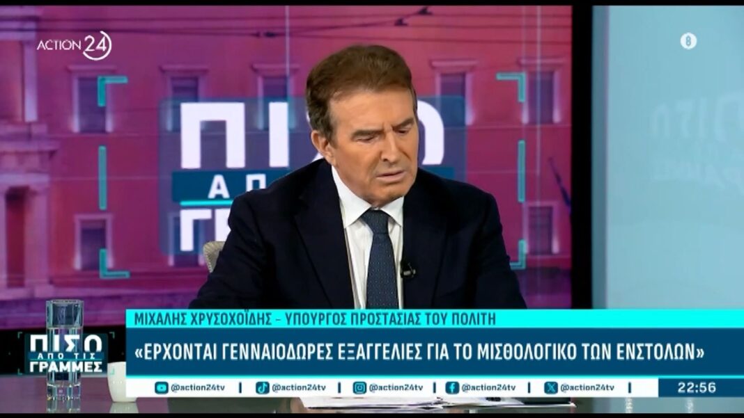 Ο Υπουργός Προστασίας του Πολίτη, Μιχάλης Χρυσοχοΐδης, ανακοίνωσε την πρόθεση της κυβέρνησης να προχωρήσει σε γενναίες εξαγγελίες σχετικά με τις αποδοχές των ενστόλων. Σε συνέντευξή του, τόνισε τη σημασία της αναγνώρισης της προσφοράς και της στήριξης των στελεχών των σωμάτων ασφαλείας.