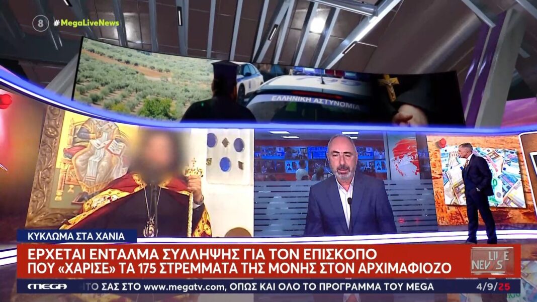 Ένταλμα σύλληψης έχει εκδοθεί για τον επίσκοπο που φέρεται να εμπλέκεται στην υπόθεση δωρεάς 175 στρεμμάτων γης από τη Μονή σε γνωστό αρχιμαφιόζο. Η υπόθεση αυτή έχει προκαλέσει σοκ στην κοινωνία, ενώ οι αρχές προχωρούν σε εντατικούς ελέγχους για τη διαλεύκανση της υπόθεσης.