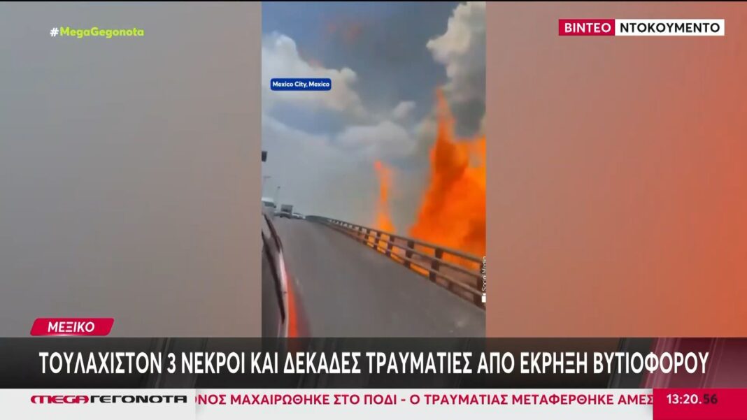 Έκρηξη βυτιοφόρου στο Μεξικό προκάλεσε τουλάχιστον τρεις θανάτους και σοβαρούς τραυματισμούς σε 90 άτομα. Πολλοί από τους τραυματίες νοσηλεύονται σε κρίσιμη κατάσταση, με εγκαύματα δευτέρου και τρίτου βαθμού.