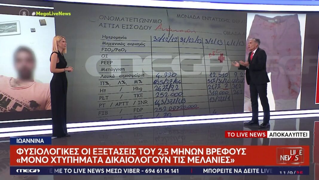 Σύμφωνα με τις τελευταίες εξετάσεις, το 2,5 μηνών βρέφος, το οποίο νοσηλεύτηκε νωρίτερα, παρουσίασε φυσιολογικά αποτελέσματα. Ωστόσο, οι ιατρικές αρχές επισημαίνουν ότι οι μελανιές που βρέθηκαν στο σώμα του δεν μπορούν να δικαιολογηθούν από αβλαβείς αιτίες, υποδεικνύοντας ότι ενδέχεται να έχουν προκληθεί από χτυπήματα.
