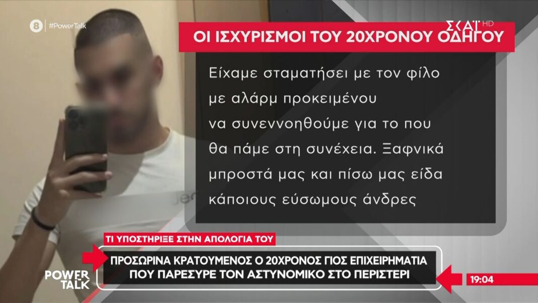 Προφυλακίστηκε ο 20χρονος γιος γνωστού επιχειρηματία, ο οποίος φέρεται να παρέσυρε με το αυτοκίνητό του έναν αστυνομικό στο Περιστέρι. Το περιστατικό συνέβη κατά τη διάρκεια ελέγχου της τροχαίας, όταν ο νεαρός επιχείρησε να διαφύγει, με αποτέλεσμα να τραυματιστεί σοβαρά ο αστυνομικός.