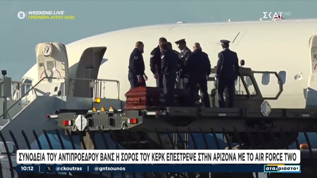 Η σορός του Τσάρλι Κερκ επέστρεψε στην Αριζόνα με το Air Force Two, συνοδεία του Αντιπροέδρου Βανς μετά τη δολοφονία του κατά τη διάρκεια ομιλίας του