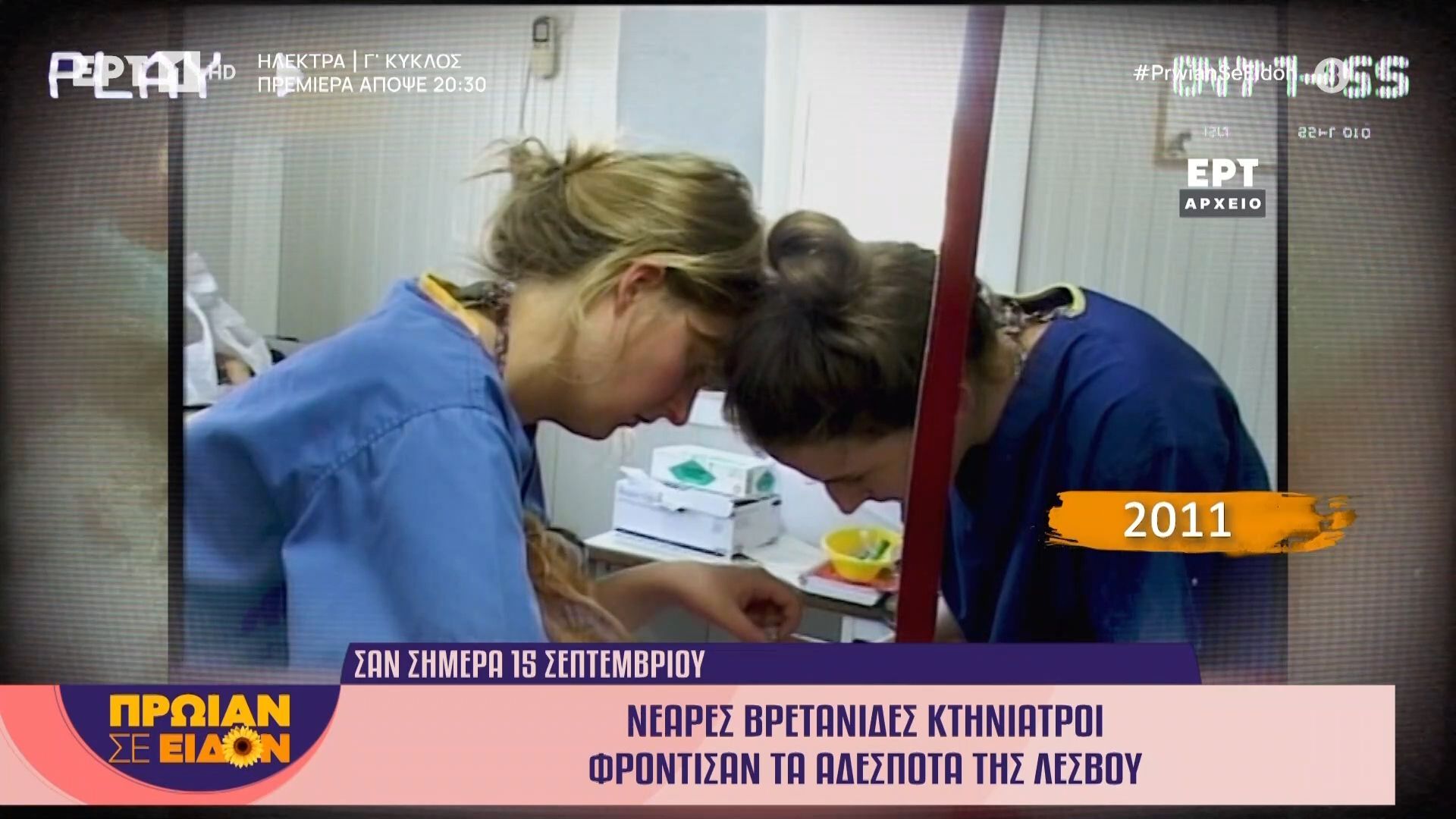 Στις 15 Σεπτεμβρίου 2011, μια ομάδα νεαρών Βρετανίδων κτηνιάτρων βρέθηκε στη Λέσβο για να προσφέρει τις υπηρεσίες της στα αδέσποτα ζώα του νησιού. Με αφοσίωση και επαγγελματισμό, οι κτηνίατροι ανέλαβαν τη φροντίδα των ζώων, προσφέροντας ιατρική περίθαλψη και εμβολιασμούς.