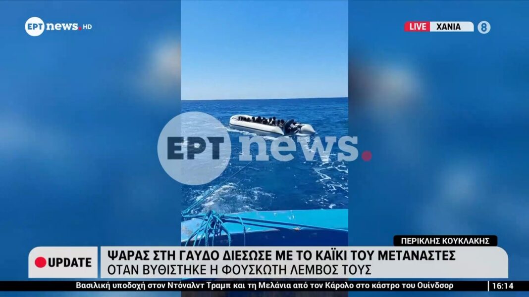 Στη Γαύδο, ένας τολμηρός ψαράς έσπευσε σε βοήθεια μεταναστών που βρέθηκαν σε κίνδυνο όταν η φουσκωτή λέμβος τους βυθίστηκε. Χρησιμοποιώντας το καΐκι του, κατάφερε να τους διασώσει και να τους μεταφέρει σε ασφαλές σημείο.