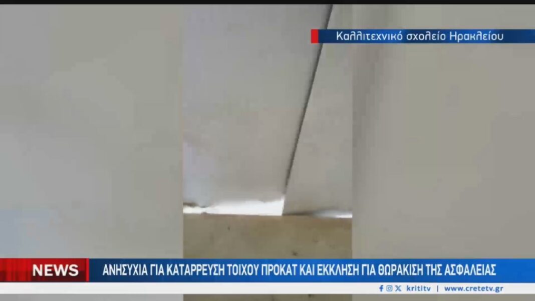 Κραυγή απόγνωσης εκφράζουν οι γονείς μαθητών του Καλλιτεχνικού Σχολείου Ηρακλείου, οι οποίοι ανησυχούν για την ασφάλεια των παιδιών τους λόγω σοβαρών προβλημάτων στις λυόμενες αίθουσες. Οι εγκαταστάσεις παρουσιάζουν διαρροές από τη στέγη και φθορές στα δάπεδα, ενώ χαρακτηριστική είναι η περίπτωση του τοίχου που κινείται με το άγγιγμα.