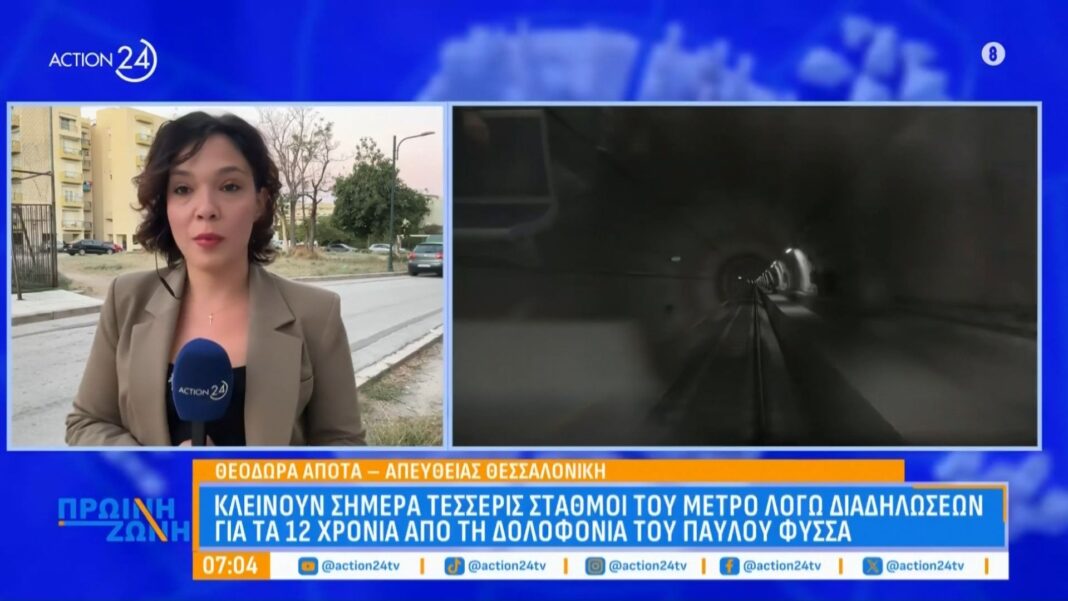 Σήμερα, τέσσερις σταθμοί του μετρό στη Θεσσαλονίκη θα παραμείνουν κλειστοί λόγω προγραμματισμένων διαδηλώσεων για την επέτειο των 12 χρόνων από τη δολοφονία του Παύλου Φύσσα. Οι συγκεντρώσεις αναμένονται να προσελκύσουν πλήθος κόσμου και οι αρχές έχουν λάβει μέτρα ασφαλείας για την ομαλή διεξαγωγή τους.