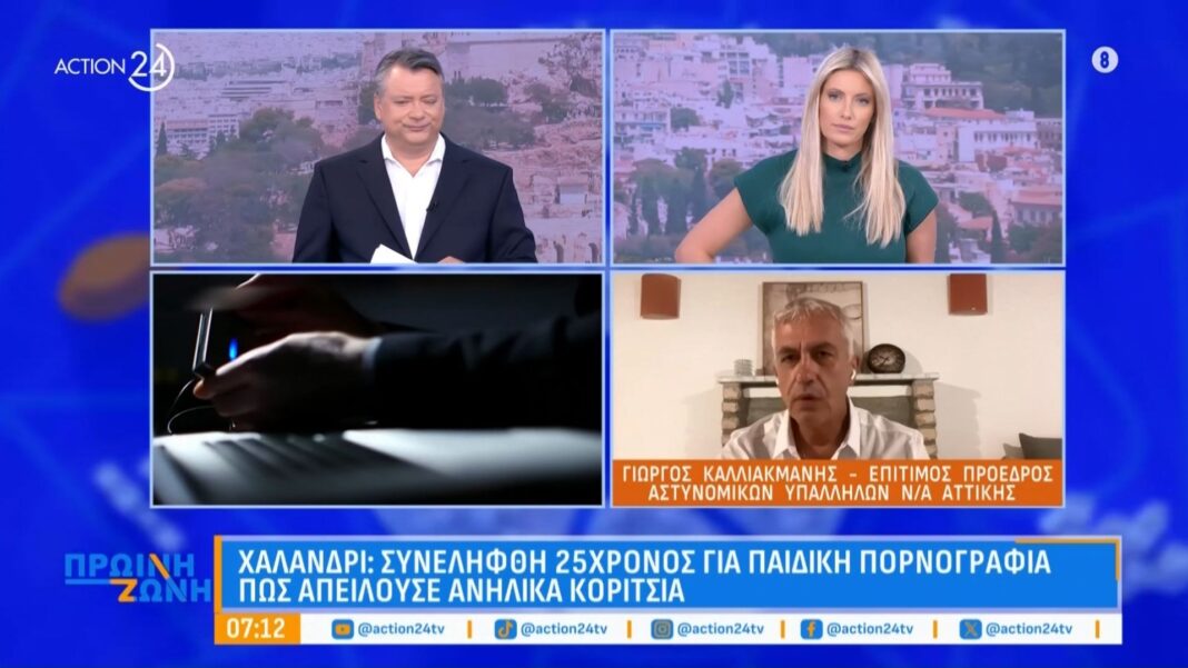 Συνελήφθη 25χρονος στον Χαλάνδρι, ο οποίος φέρεται να προέβαινε σε πράξεις παιδικής πορνογραφίας. Η αστυνομία ανακάλυψε ότι ο δράστης χρησιμοποιούσε κοινωνικά δίκτυα για να προσεγγίζει ανήλικα κορίτσια, απειλώντας τα ώστε να αποκαλύψουν προσωπικές πληροφορίες και φωτογραφίες.
