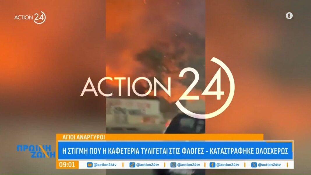 Άγιοι Ανάργυροι: Αποκλειστικά πλάνα του ACTION 24 από τη στιγμή που η καφετέρια τυλίγεται στις φλόγες
