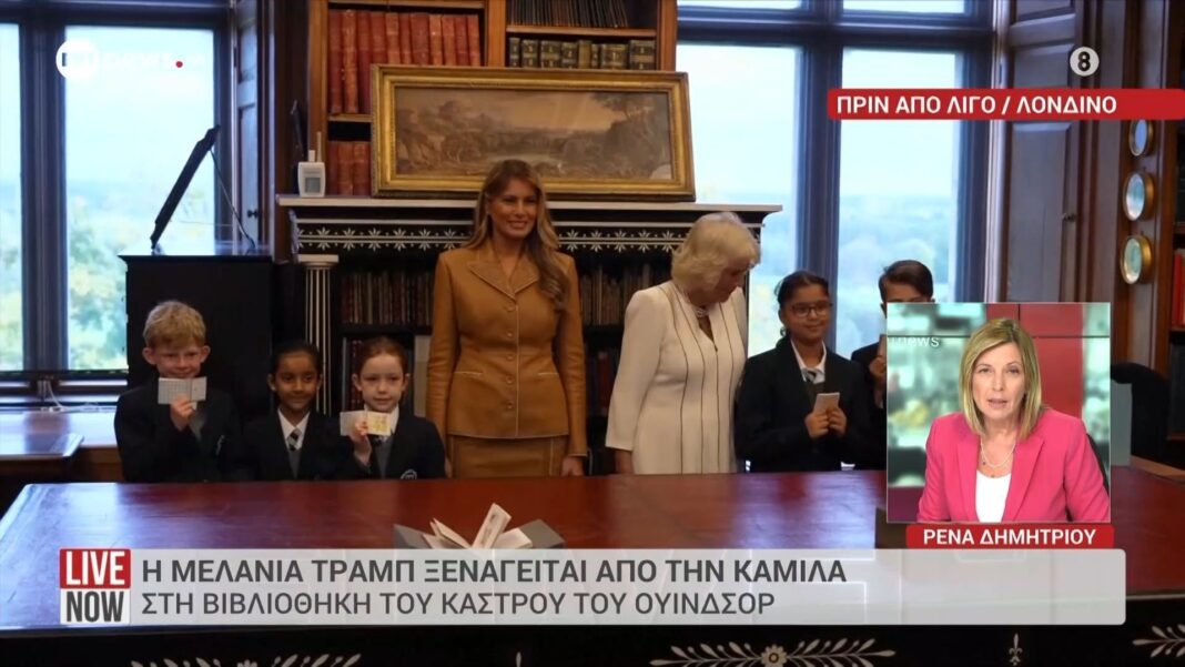 Η Μελάνια Τραμπ ξεναγείται από την Καμίλα στη βιβλιοθήκη του Ουίνδσορ