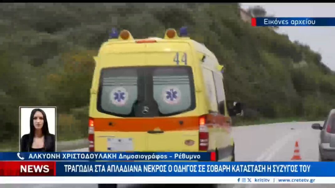 Η σύζυγός του, που βρισκόταν στο αυτοκίνητο, τραυματίστηκε σοβαρά και μεταφέρθηκε εσπευσμένα στο νοσοκομείο. Οι αρχές ερευνούν τα αίτια του ατυχήματος, που προστίθεται στη μακρά λίστα των θανατηφόρων τροχαίων στην Κρήτη, προκαλώντας ανησυχία στην τοπική κοινωνία.
