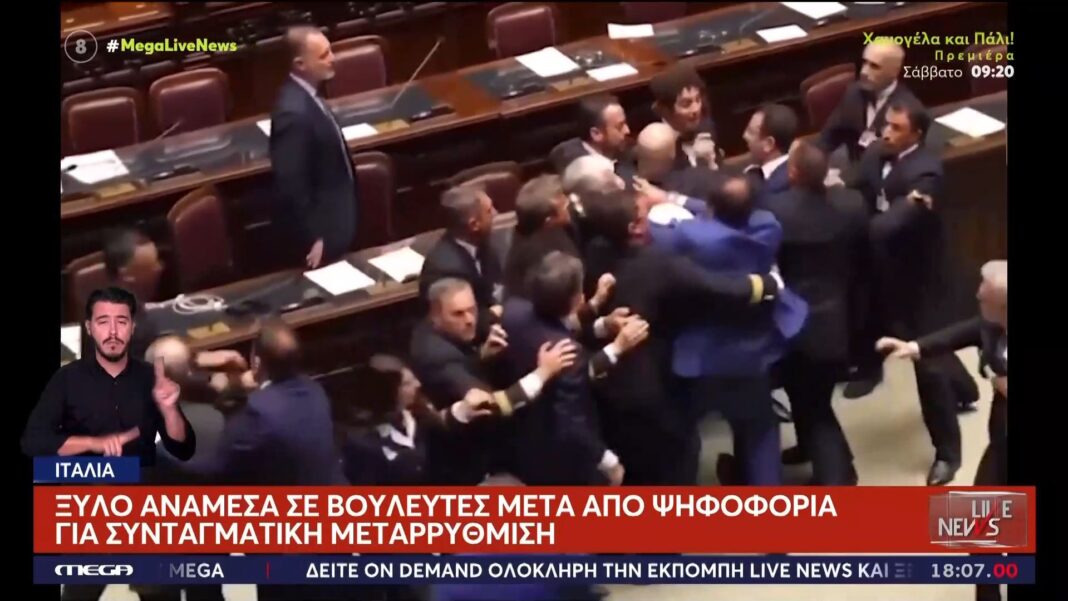 Στο Κοινοβούλιο της Ιταλίας σημειώθηκαν σοβαρά επεισόδια βίας μεταξύ βουλευτών, αμέσως μετά την ψηφοφορία για μια σημαντική συνταγματική μεταρρύθμιση. Οι εντάσεις είχαν ήδη κλιμακωθεί κατά τη διάρκεια της διαδικασίας, με διαφωνίες να εκφράζονται έντονα από τις πολιτικές παρατάξεις.