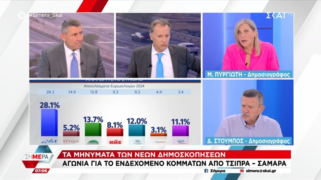 Οι δημοσιογράφοι Μαριάννα Πυργιώτη και Δημήτρης Στούμπος αναλύουν τις πρόσφατες δημοσκοπήσεις και τα πολιτικά μηνύματα που αυτές αποτυπώνουν. Παράλληλα, εξετάζουν τις τάσεις και τις αλλαγές στη δημόσια γνώμη, προσφέροντας μια σαφή εικόνα της τρέχουσας πολιτικής σκηνής.