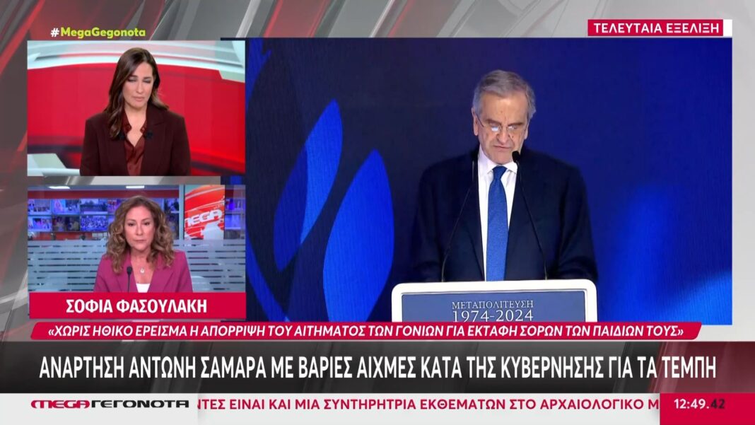 Κριτική Σαμαρά στην κυβέρνηση για τα Τέμπη, με έμφαση στην ανθρώπινη αξιοπρέπεια και την ανάγκη για δικαίωση των οικογενειών