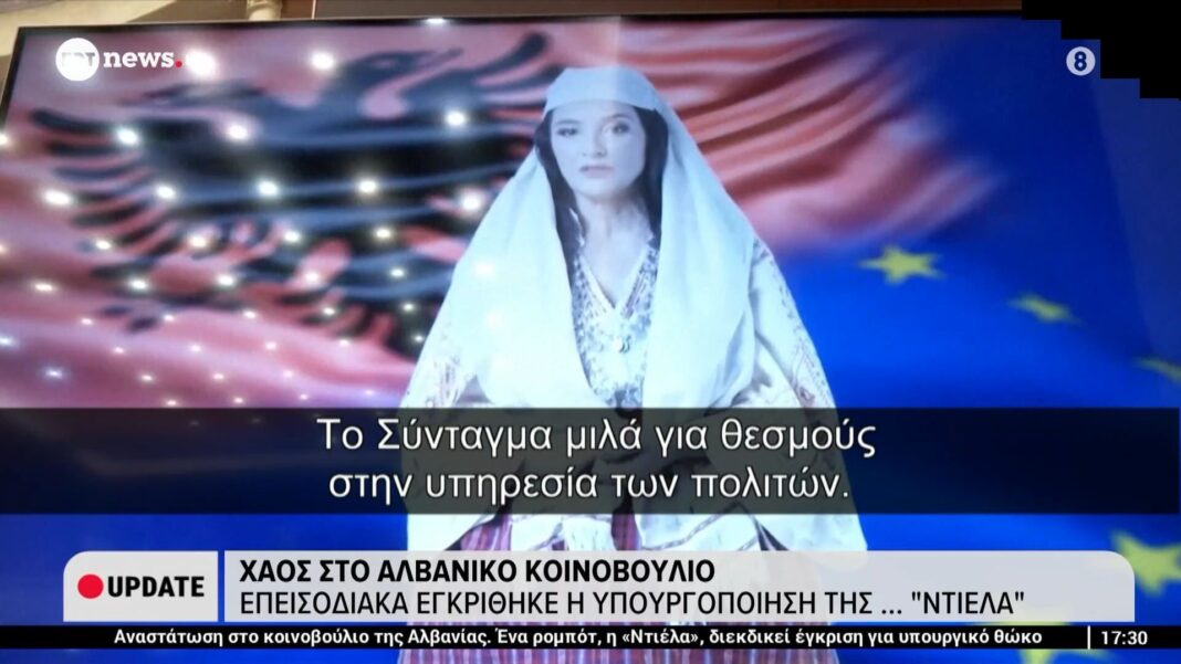 Στο αλβανικό κοινοβούλιο επικράτησε αναστάτωση κατά την έγκριση της υπουργοποίησης του ψηφιακού χαρακτήρα Ντιέλα. Η διαδικασία ήταν επεισοδιακή, με αντιπαραθέσεις και διαμαρτυρίες από την αντιπολίτευση, που εξέφρασε τις ανησυχίες της σχετικά με την καινοτομία αυτή.