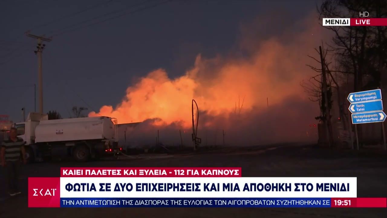 Φωτιά ξέσπασε σε δύο επιχειρήσεις και μια αποθήκη στο Μενίδι, προκαλώντας σοβαρές ζημιές και αναστάτωση στην περιοχή. Οι πυροσβεστικές δυνάμεις κινητοποιήθηκαν άμεσα για την κατάσβεση της φωτιάς, ενώ οι αρχές διεξάγουν έρευνες για τα αίτια της πυρκαγιάς.