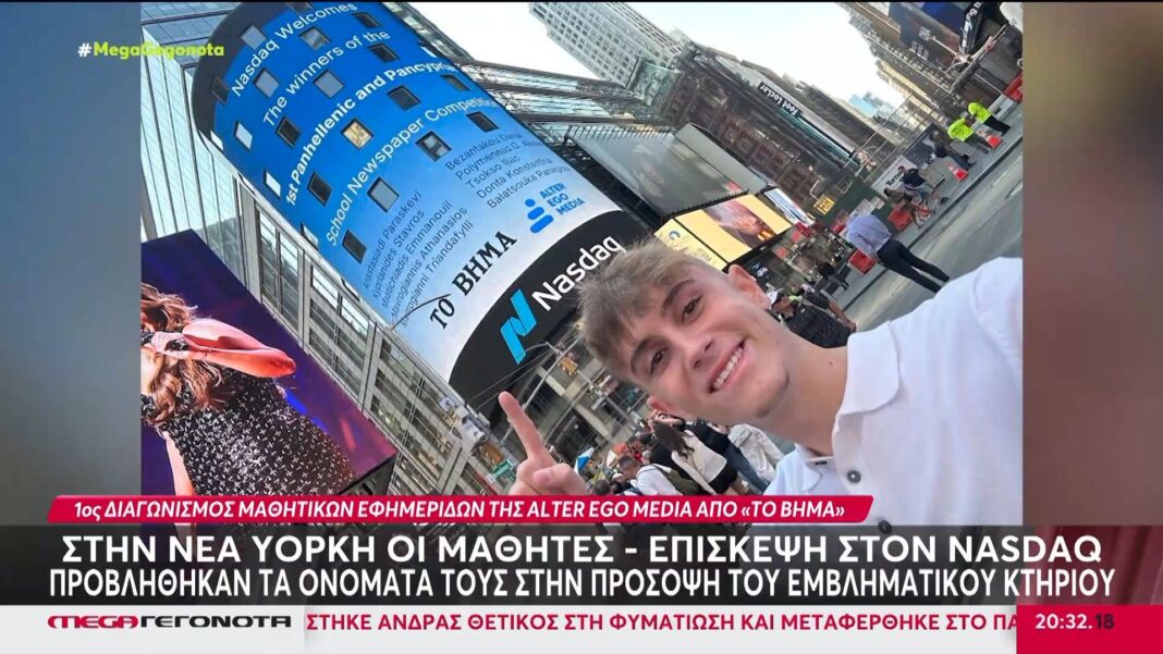 Η Alter Ego Media και ο θεσμός των Μαθητικών Εφημερίδων του Βήματος στο billboard του Nasdaq της Νέας Υόρκης