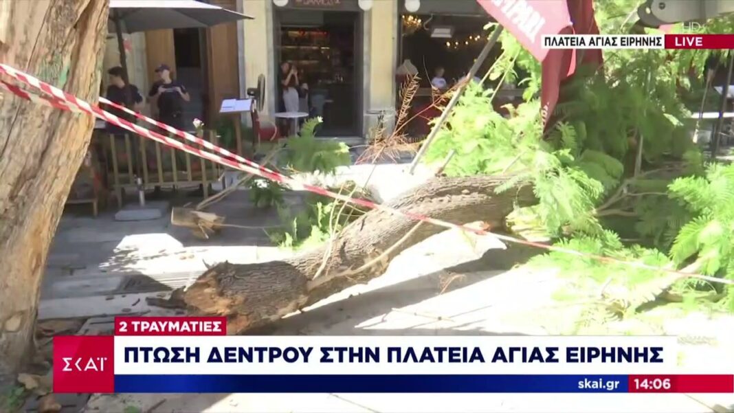 Δραματικό περιστατικό στο κέντρο της Αθήνας όπου δέντρο κατέρρευσε στην πλατεία Αγίας Ειρήνης προκαλώντας τραυματισμό δύο ατόμων
