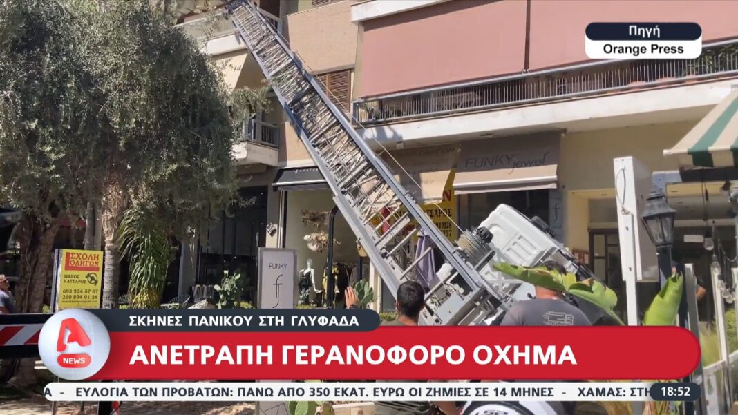 Σκηνές πανικού στη Γλυφάδα – Ανετράπη γερανοφόρο όχημα