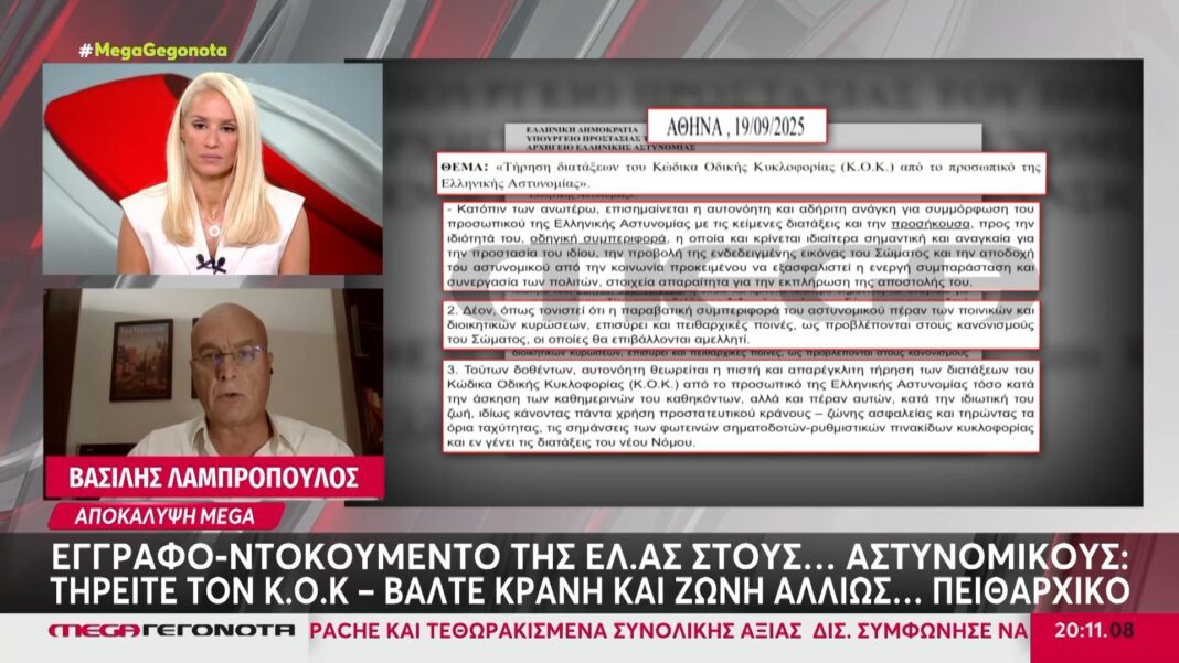 Αποκάλυψη MEGA: Έγγραφο-ντοκουμέντο της ΕΛ.ΑΣ στους αστυνομικούς- Τηρείτε τον Κ.Ο.Κ αλλιώς πειθαρχικό