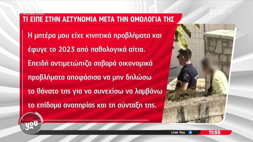 Η ομολογία της 62χρονης: «Την έθαψα γιατί χρειαζόμουν τα λεφτά»