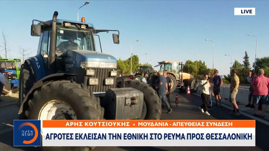 Αγρότες έκλεισαν τον δρόμο προς Θεσσαλονίκη σε ένδειξη διαμαρτυρίας για σοβαρά προβλήματα που αντιμετωπίζουν. Οι συμμετέχοντες εκφράζουν την απόγνωσή τους σχετικά με την εξάπλωση της ευλογιάς, τις καθυστερήσεις στον ΟΠΕΚΕΠΕ και τα ζητήματα που αφορούν τον αριθμό ταυτότητας ακινήτων.