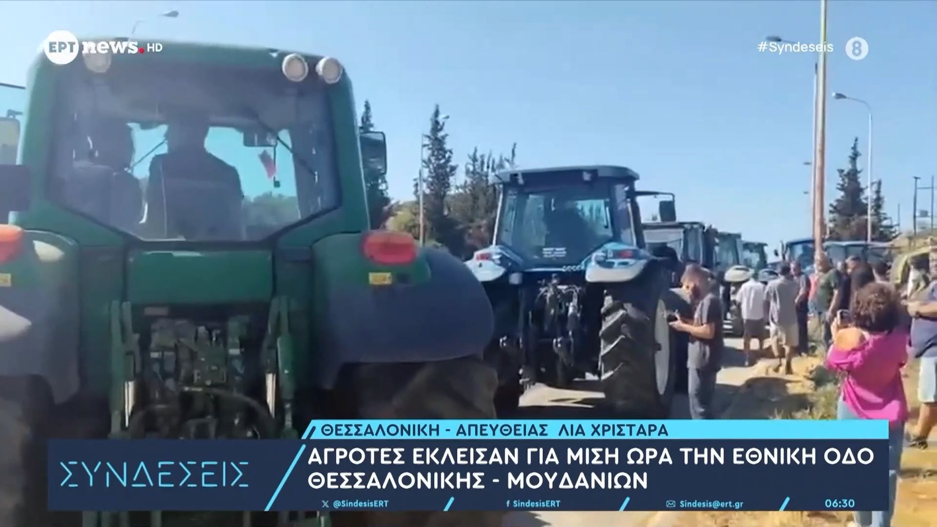 Πενήντα τουλάχιστον τρακτέρ έχουν παραταχθεί στην Εθνική οδό Θεσσαλονίκης – Μουδανίων, με τους αγρότες να προχωρούν σε διαμαρτυρία που διήρκεσε μισή ώρα. Οι συμμετέχοντες απαιτούν την επίλυση ζητημάτων που αφορούν την αγροτική τους δραστηριότητα και τις συνθήκες εργασίας τους.