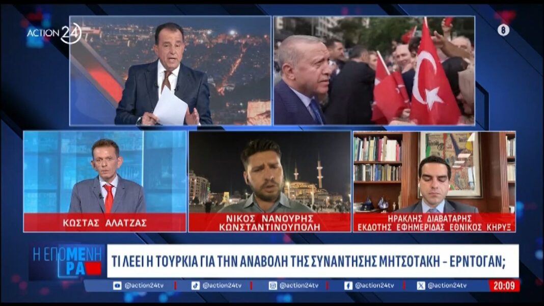 Ο Ν. Νανούρης αποκαλύπτει ότι η συνάντηση του Ερντογάν με τον Έλληνα Πρωθυπουργό, Κ. Μητσοτάκη, δεν ήταν αρχικά προγραμματισμένη στην ατζέντα της σημερινής ημέρας. Η αναβολή της συνάντησης φαίνεται να σχετίζεται με τις τρέχουσες πολιτικές εξελίξεις και τις διακυβερνητικές σχέσεις μεταξύ των δύο χωρών.