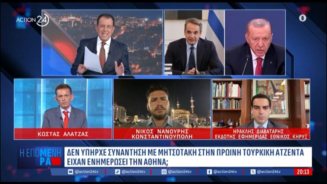 Στην εκπομπή, ο Σεραφείμ Κοτρώτσος αναλύει τη στρατηγική του Τούρκου προέδρου, υποστηρίζοντας ότι η συνάντηση με τον Έλληνα Πρωθυπουργό μπορεί να έχει πολιτικά κίνητρα. Εξετάζει εάν ο Ερντογάν επιδιώκει να εκμεταλλευτεί την κατάσταση για να ενισχύσει τη θέση του στο εσωτερικό μέτωπο, καθώς και την εικόνα της Τουρκίας στο διεθνές προσκήνιο.