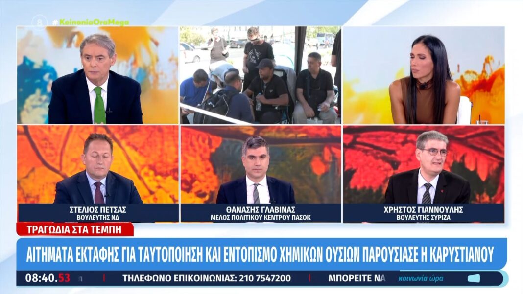 Πολιτική ανάλυση με τους Πέτσα, Γλαβίνα και Γιαννούλη στην εκπομπή Κοινωνία Ώρα MEGA, όπου εξετάζονται οι τελευταίες εξελίξεις και προκλήσεις της πολιτικής σκηνής