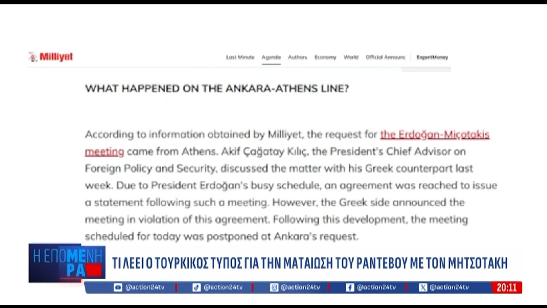 Η ματαίωση του ραντεβού μεταξύ Μητσοτάκη και Ερντογάν έχει προκαλέσει έντονο ενδιαφέρον στην τουρκική δημοσιογραφία. Οι αναλυτές επισημαίνουν ότι οι πολιτικές εντάσεις και οι πρόσφατες εξελίξεις στις ελληνοτουρκικές σχέσεις ενδέχεται να έχουν συμβάλει σε αυτή την απόφαση, αποκαλύπτοντας τις δυσκολίες στην επικοινωνία των δύο χωρών.