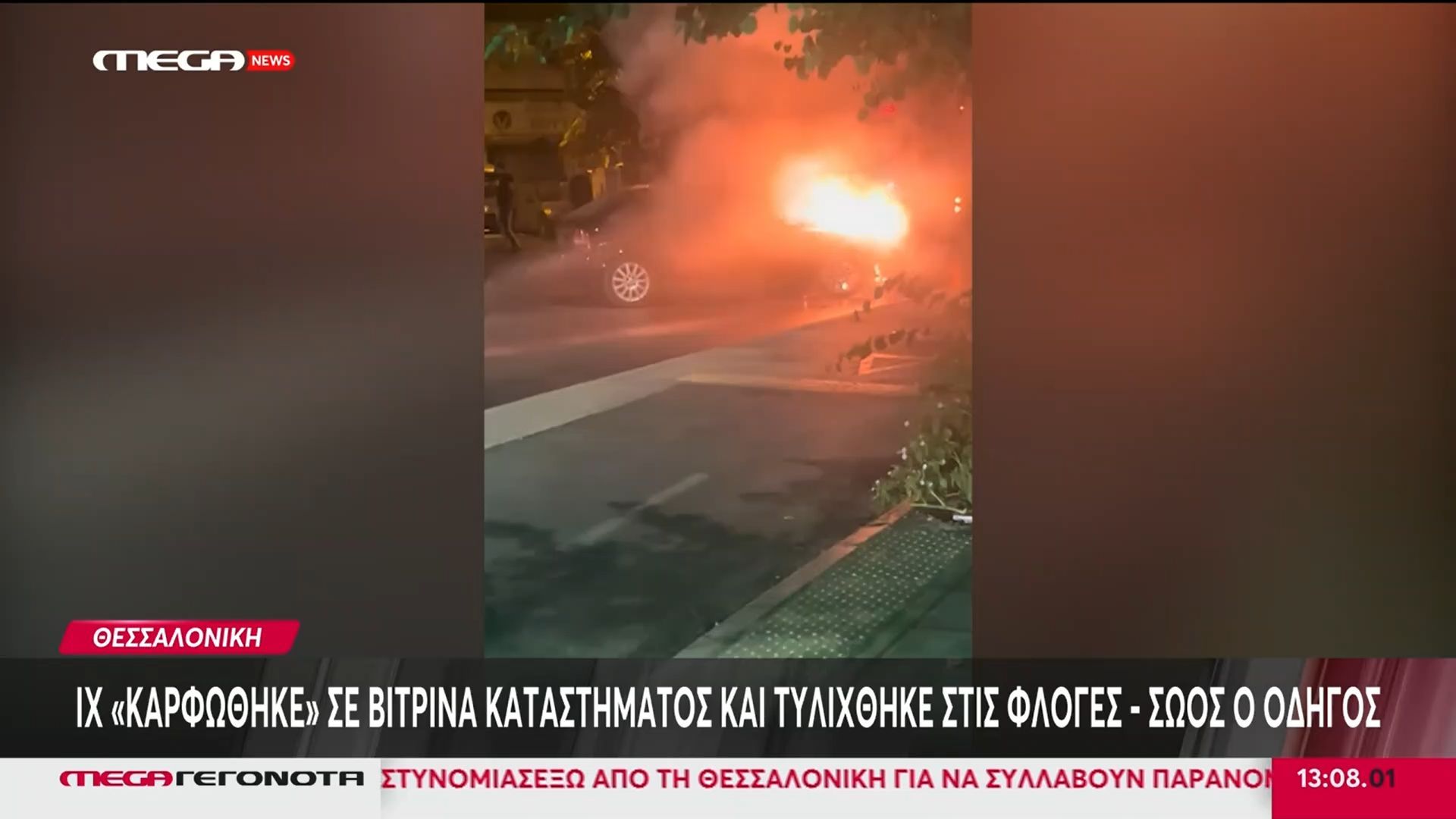 ΙΧ αυτοκίνητο κατέληξε να καρφωθεί σε βιτρίνα καταστήματος στη Θεσσαλονίκη, μετά από απώλεια ελέγχου από τον οδηγό του. Το όχημα αμέσως τυλίχθηκε στις φλόγες, προκαλώντας αναστάτωση στην περιοχή και απαιτώντας άμεση παρέμβαση της Πυροσβεστικής.